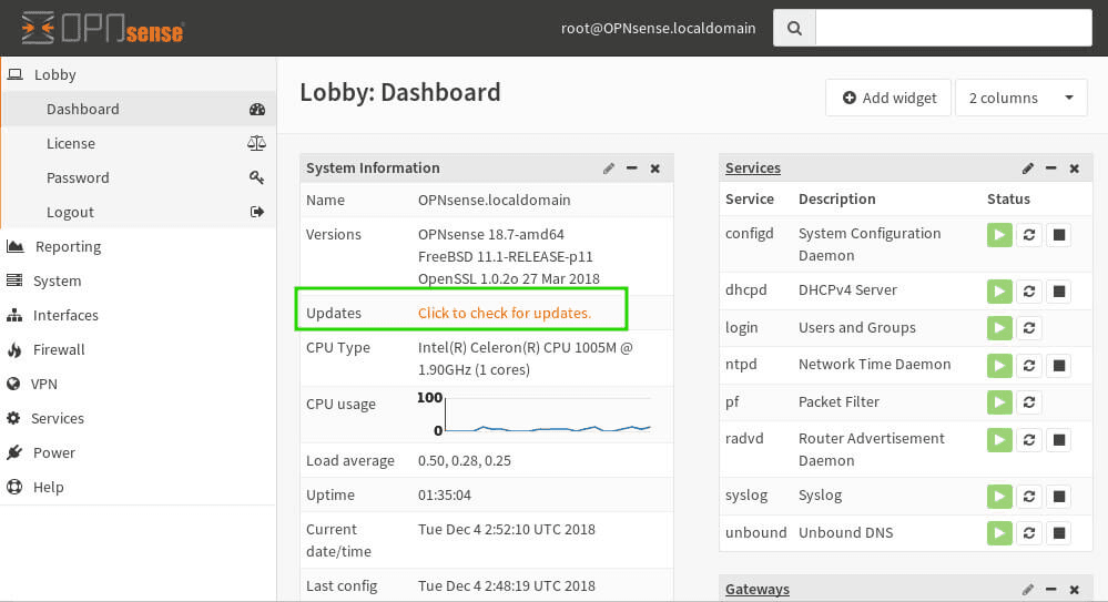 Tại thời điểm này, bản cài đặt cơ bản của OpnSense đã sẵn sàng chạy cũng như được cập nhật đầy đủ!