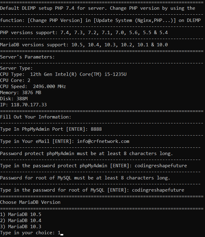 - Choose MariaDB Version: chọn phiên bản MariaDB