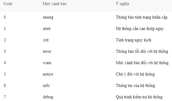 rsyslog sẽ log lại mail với mức cảnh báo từ err trở lên (err, crit, alert, emerg)