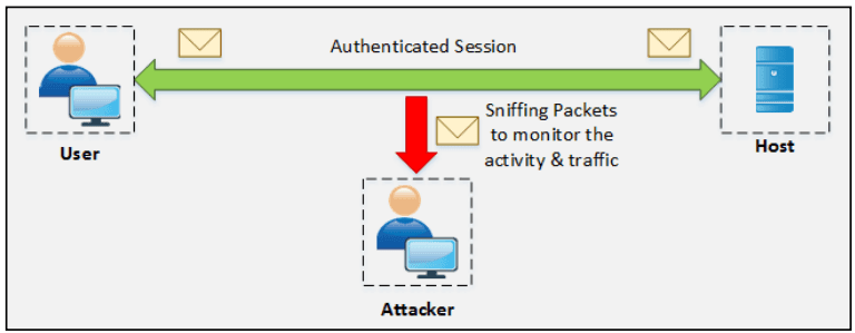 - Sniffing: Kẻ tấn công cố gắng chen vào giữa nạn nhân và mục tiêu để đánh hơi gói tin.