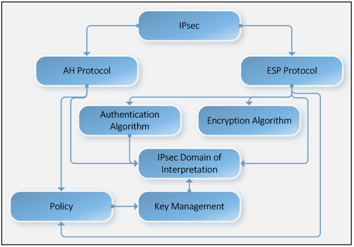IPSec là viết tắt của IP security được sử dụng để bảo mật lưu lượng IP chung. Sức mạnh của IPsec nằm ở khả năng hỗ trợ nhiều giao thức và thuật toán. Nó cũng kết hợp những tiến bộ mới trong giao thức mã hóa và băm. Mục tiêu chính là cung cấp CIA (bảo mật, toàn vẹn và xác thực) cho virtual networks trong các môi trường mạng hiện tại. IPSec đảm bảo các đối tượng luôn hoạt động trong thời gian gói tin đi qua đường hầm VPN đến đích.