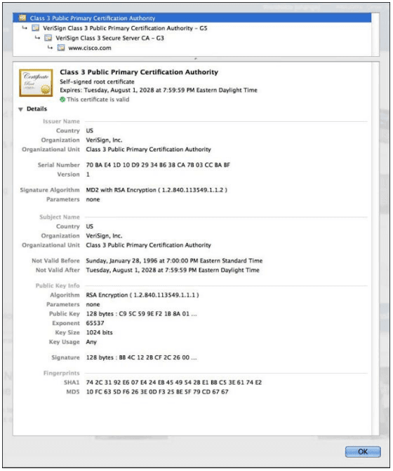 Chứng chỉ gốc cung cấp khóa công khai và các chi tiết khác của CA. Ví dụ về một trong số đó là:
