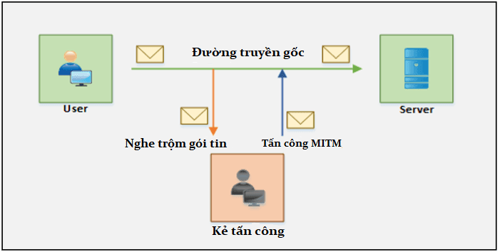 Đây là kiểu tấn công mà người tấn công chen vào giữa các nodes khác. MITM attack có thể được hiểu là một user truyền tin với một user hoặc server khác, và người tấn công sẽ tham gia vào đoạn hội thoại bằng cách nghe trộm gói tin và tạo ra tấn công MITM. Dưới đây là các tài nguyên sẵn có để tổ chức tấn công MITM: