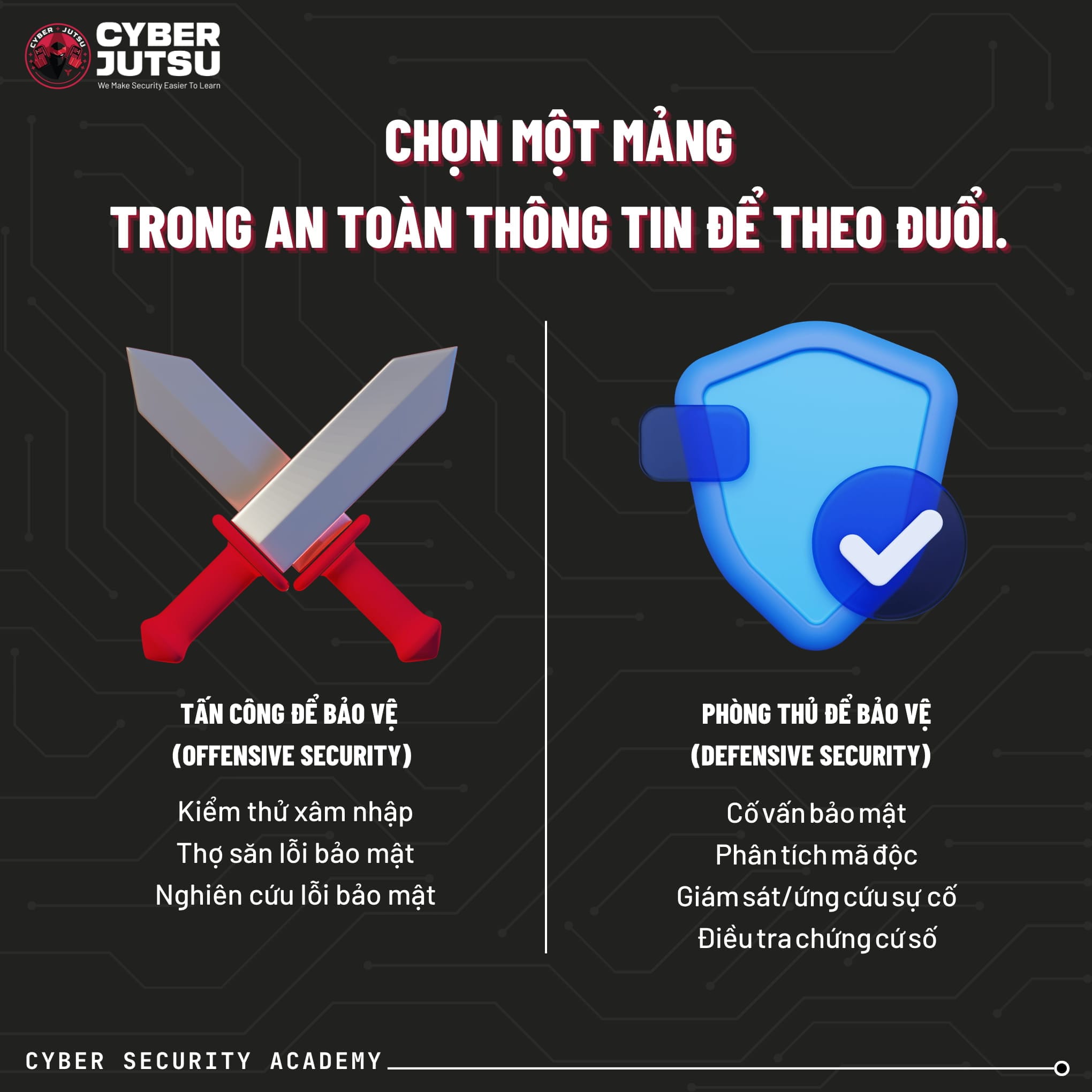 Hãy chọn cho mình một con đường trong ngành bảo mật rộng lớn này. Tùy vào mỗi vị trí mà đòi hỏi những mảng kiến thức và kỹ năng hoàn toàn khác nhau. Nếu bạn không biết mình phù hợp vào hướng nào thì có thể: